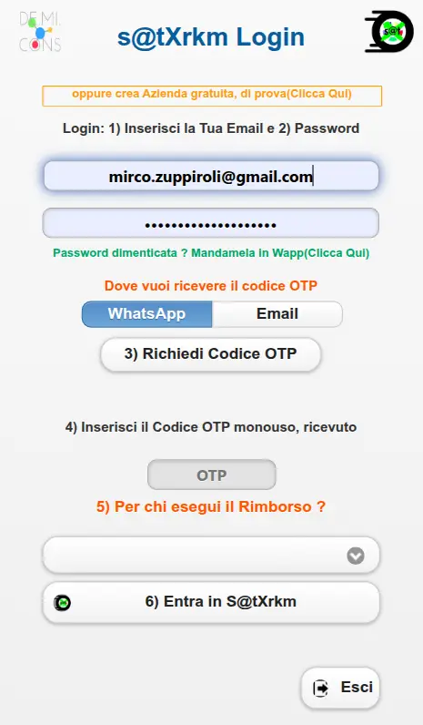 - Questo link consente a chi non ha ancora avuto modo di provare satXrkm, di attivare una azienda di prova, TOTALMENTE GRATUITA E SENZA INSERIMENTO DI CARTA DI CREDITO E/O RICHIESTA DI ALCUN PAGAMENTO.