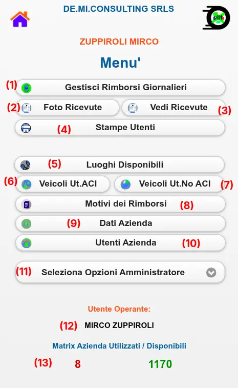 - Selezionate l’utente per il quale desiderate eseguire il rimborso(attività disponibile solo per amministratori ed utenti avanzati.